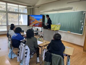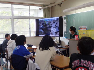 災害の種類や川崎町で過去に起こった災害について学び、実際に東日本大震災で被災し、避難から現在の生活に至るまでの体験について職員の話を聞き、災害を自分事ととして考えてもらうきっかけづくりを行います。