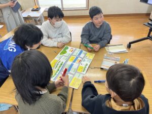 仮想の町民になり、災害が発生した時の避難場所と避難の方法、助けが必要な人の避難方法を決めグループごとにマップを作ります。避難所運営ゲーム(HUG体験)では、災害が発生し避難所に避難してくる住民の方をどこに配置するかを体験します。