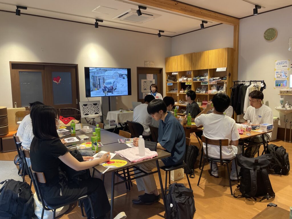 8月24日に南三陸町社協の髙橋事務局長から「被災者支援活動から学んだ住民主体の本質」と題して、震災当初の状況や被災者自身が被災者を支えた生活支援員の取組について説明がありました。東北学院大学の学生の皆さんも真剣なまなざしで話を聞いていました。