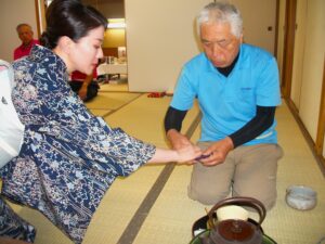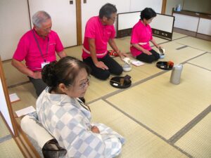 「茶は心」ということで、日常生活に通ずる茶道の作法などを教わりました。 |