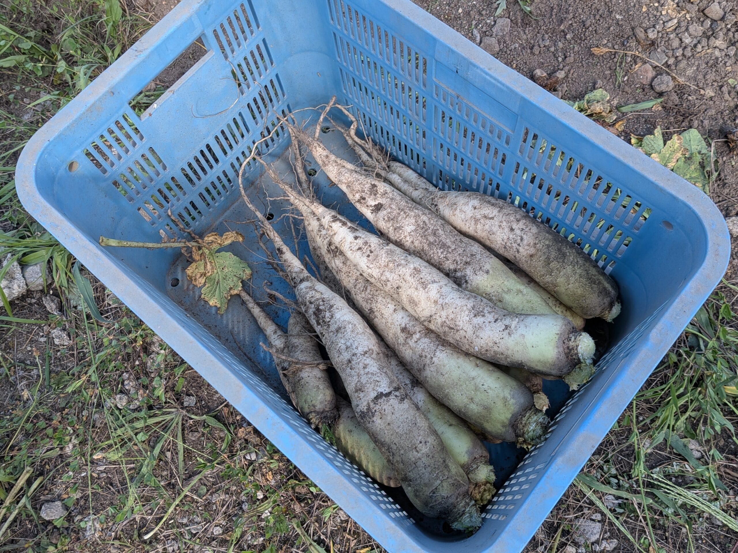 収穫した野菜は、デイサービスセンターで昼食の食材として活用しています。現在は、芋煮会に向けて白菜や人参を育てています。