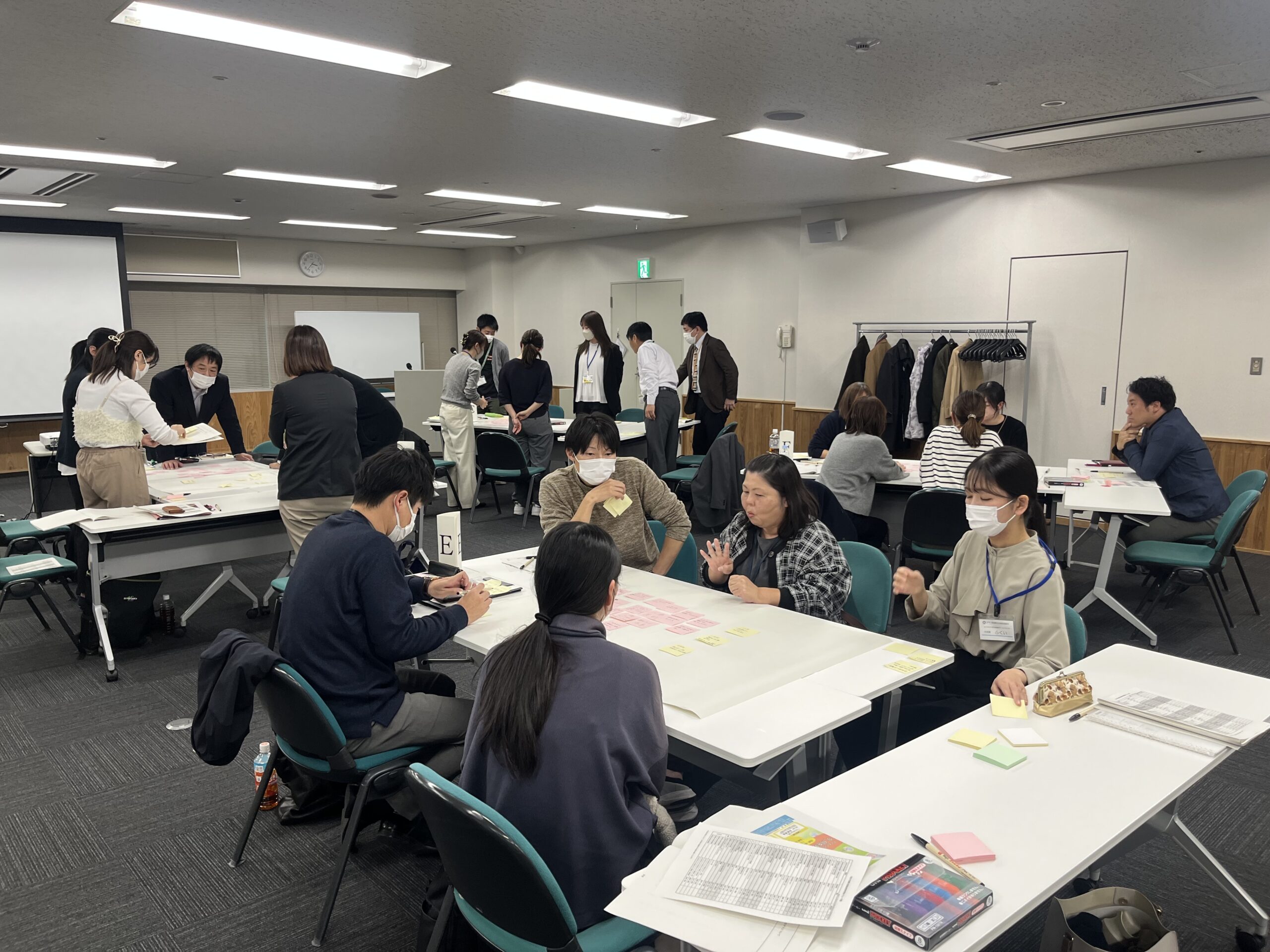 後半は、2つのテーマ(①地域学校協働活動での課題について ②日頃の学校や地域団体とのつながりについて)で、グループワークを行いました。その後の意見交換では、学校と地域の関係団体がそれぞれ、まずは地域資源を知ることが大切であること、お互いの想いや求めていることを知り、一緒に手法を考えていくことが必要であること等の声が多くありました。