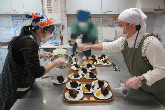 クリスマスの飾りを身に付け,より雰囲気を楽しみながらケーキを味わいました